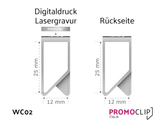 Beim Wingclip double sided haben Sie die Möglichkeit, sowohl auf der Vorder- wie auf der Rückseite eine Werbebotschaft anzubringen. Er eignet sich damit z.B. für eine zweite Sprachvariante, oder einen QR-Code der zu Zusatzinformationen führt, oder für die verschiedenen Telefonkontakte Ihrer Vertriebsmitarbeiter. Der Kreativität und den Ideen sind hier keine Grenzen gesetzt!