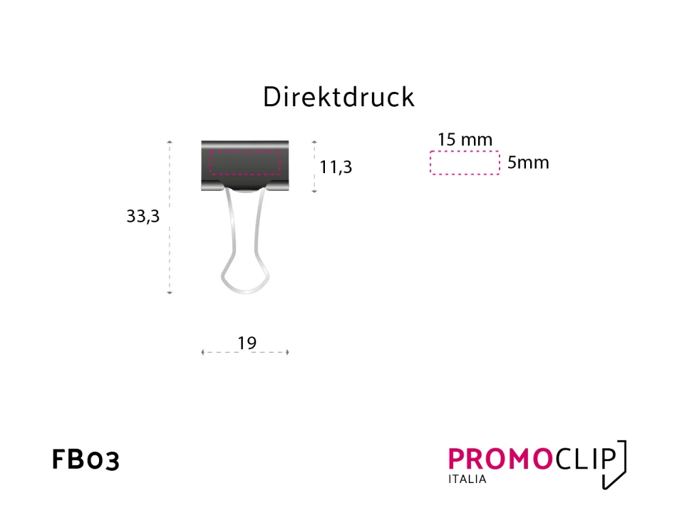 Die stabile Metallkonstruktion hält bis zu 40 Seiten sicher zusammen - ohne Löcher im Papier. Ihr Logo auf der Vorderseite macht den Foldbackclip zu einem dezenten, aber wirkungsvollen Werbeträger.
